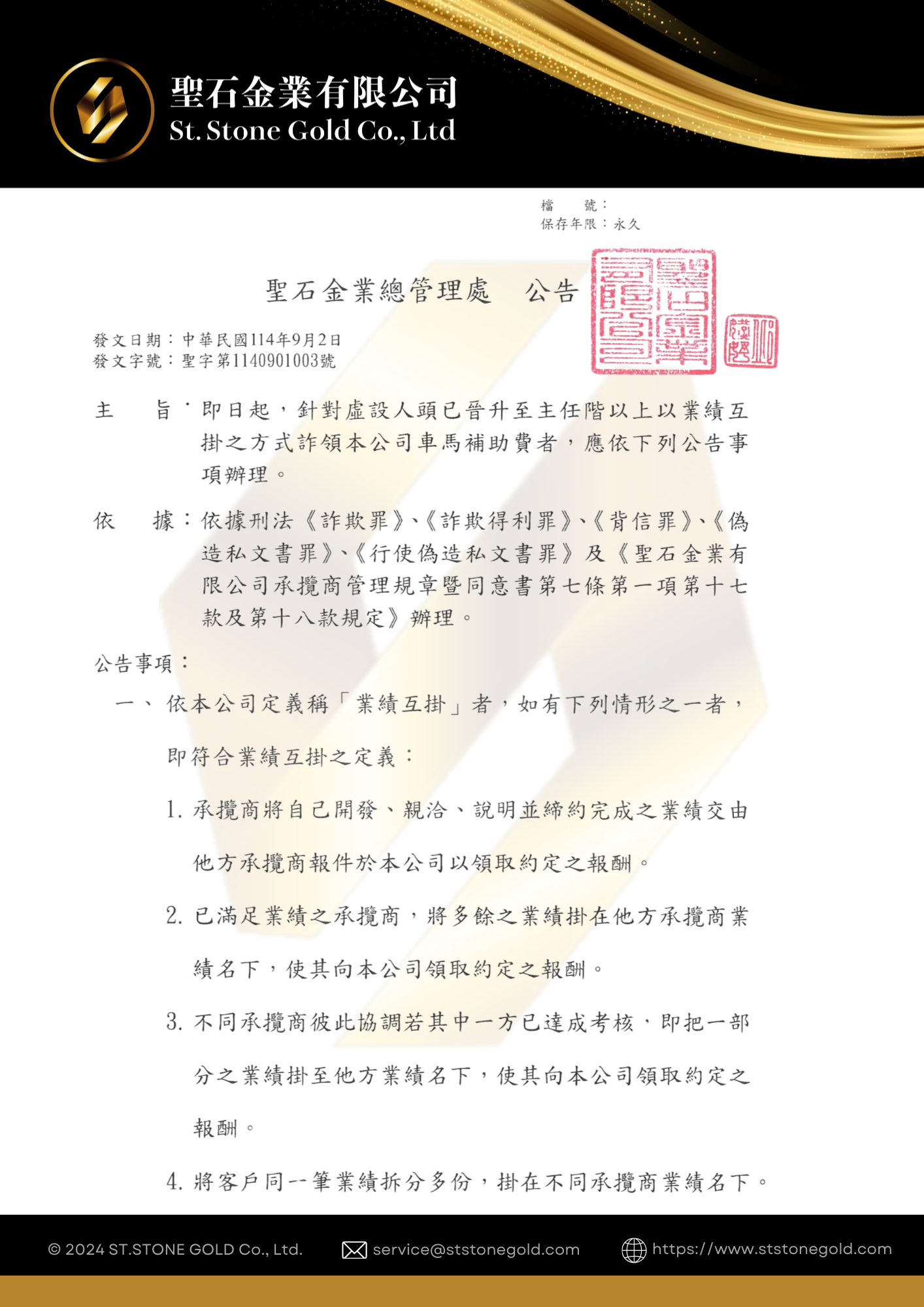 【公告】聖石金業針對不實指控及媒體報導之聲明