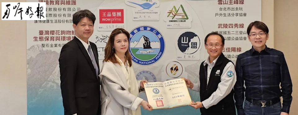 ▲聖石金業董事長邱嬿妤(左二)與雪霸國家公園管理處處長林文和(左三)簽署合作備忘。