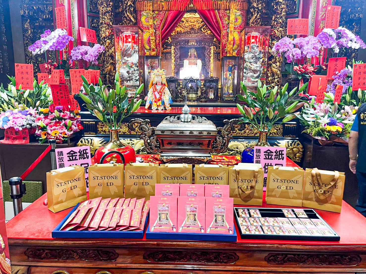 上半年「白沙屯媽祖進香」是台灣宗教界盛事,今年參與香燈腳人數突破30萬人,創下歷史新高。國內知名的聖石金業集團於取得白沙屯拱天宮授權後,特別推出兼具文化與收藏價值的「白沙屯媽祖」瑞士精品紀念黃金條塊,並於8月9日在苗栗拱天宮舉行盛大的「百金敬獻儀式」,以100枚純度999.9、重量2公克的紀念金塊,表達對媽祖庇佑的感恩之情,祈願台灣風調雨順、國泰民安。