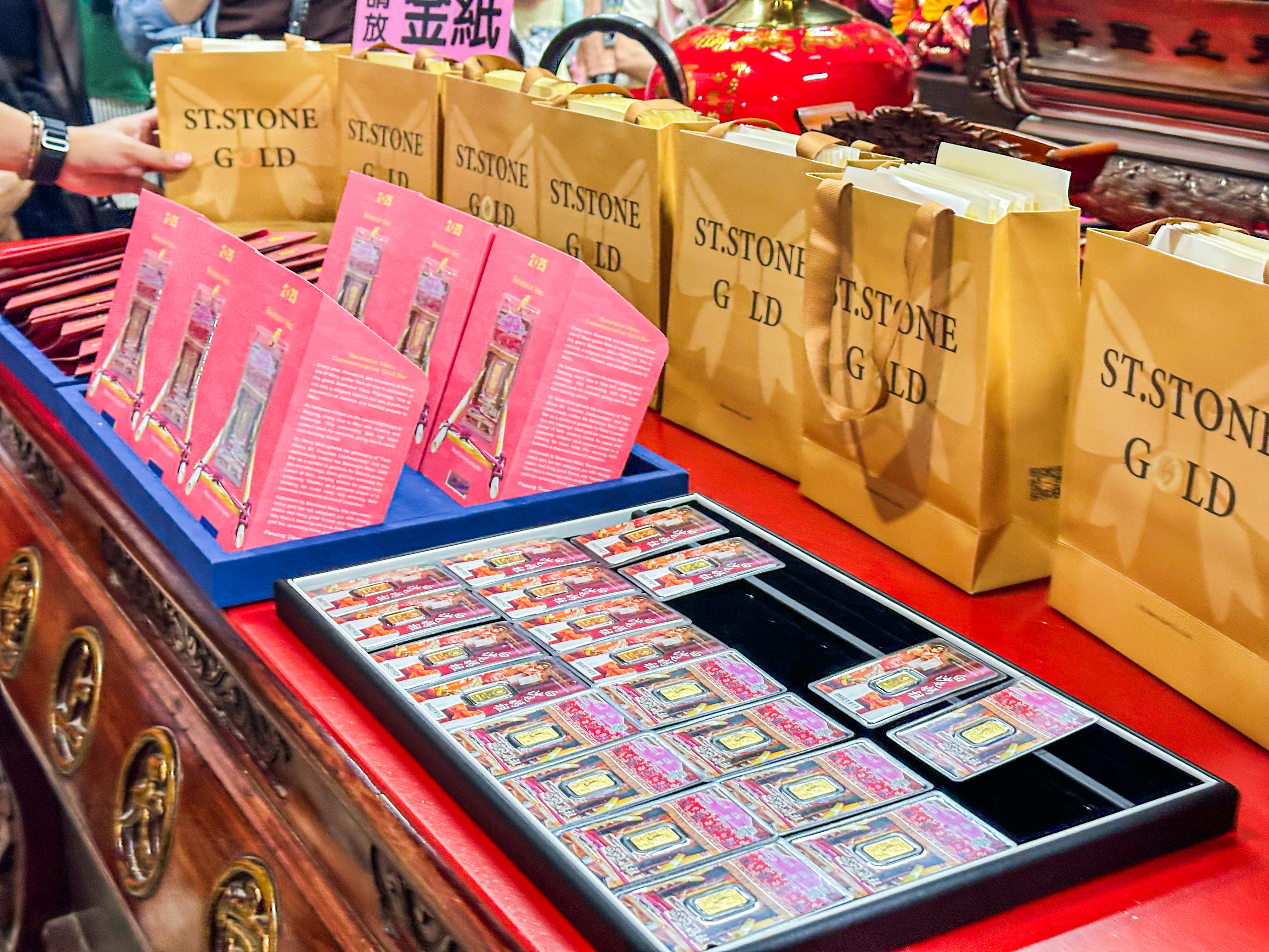 上半年「白沙屯媽祖進香」是台灣宗教界盛事,今年參與香燈腳人數突破30萬人,創下歷史新高。國內知名的聖石金業集團於取得白沙屯拱天宮授權後,特別推出兼具文化與收藏價值的「白沙屯媽祖」瑞士精品紀念黃金條塊,並於8月9日在苗栗拱天宮舉行盛大的「百金敬獻儀式」,以100枚純度999.9、重量2公克的紀念金塊,表達對媽祖庇佑的感恩之情,祈願台灣風調雨順、國泰民安。